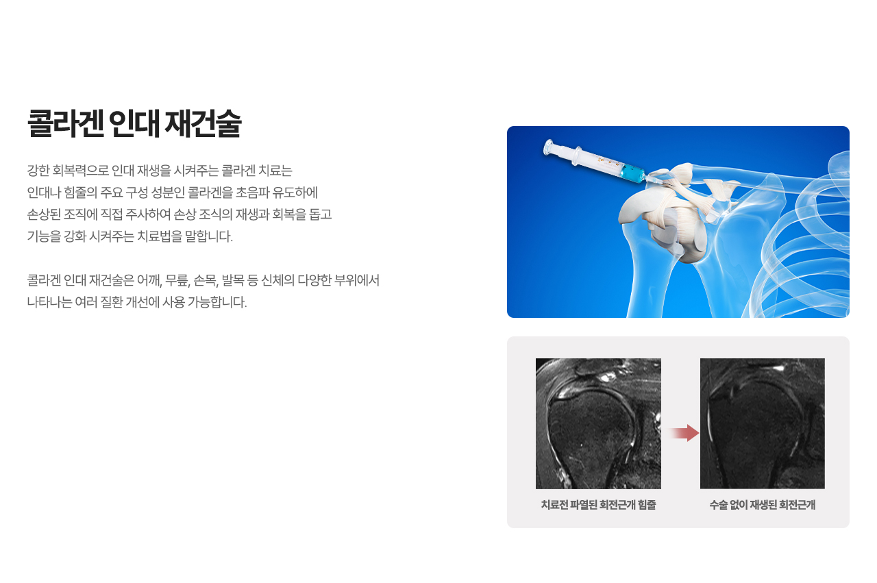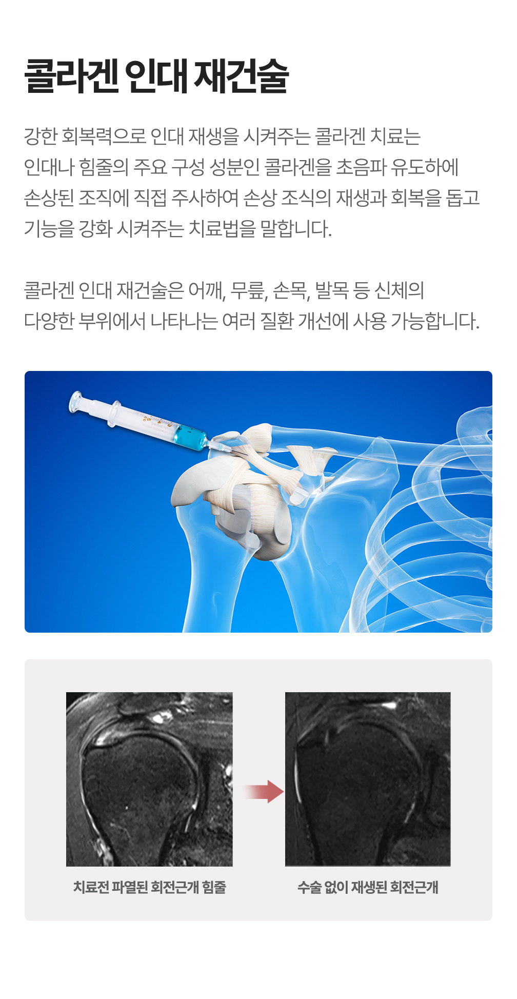 손상 부위의 인대, 근육, 힘줄 등에 조직 재생을