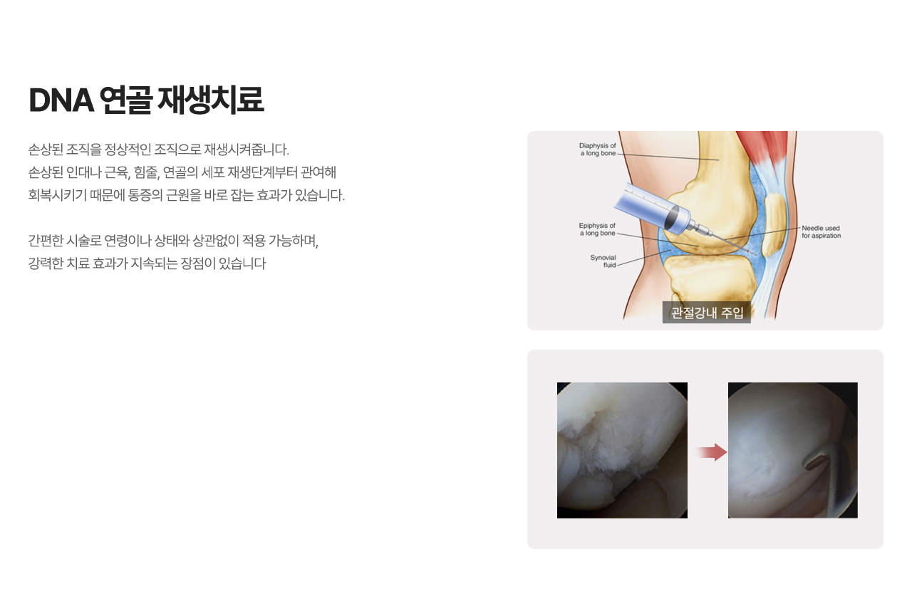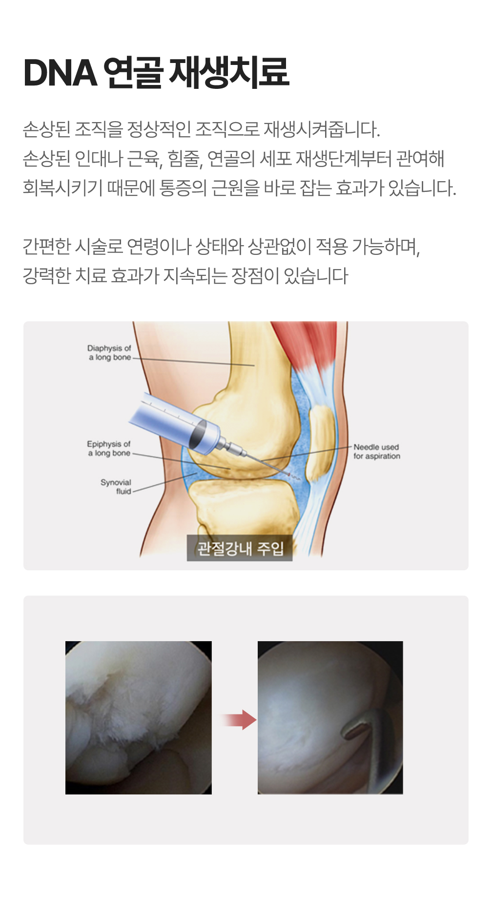 일시적인 통증의 감소가 아닌 근본적인 재생 치료를 시행합니다.